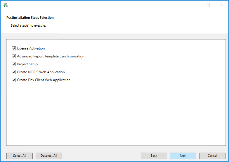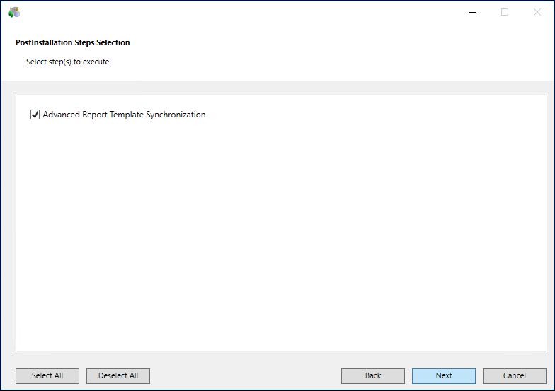 - Click Deselect All to deselect all the listed post-installation steps in the PostInstallation Steps Selection dialog box.