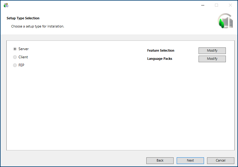 If you have already installed some of the IIS components before proceeding with the installation of a setup type (Server, Client/FEP), Installer does not identify and install any remaining component of IIS during the installation of the selected setup type.