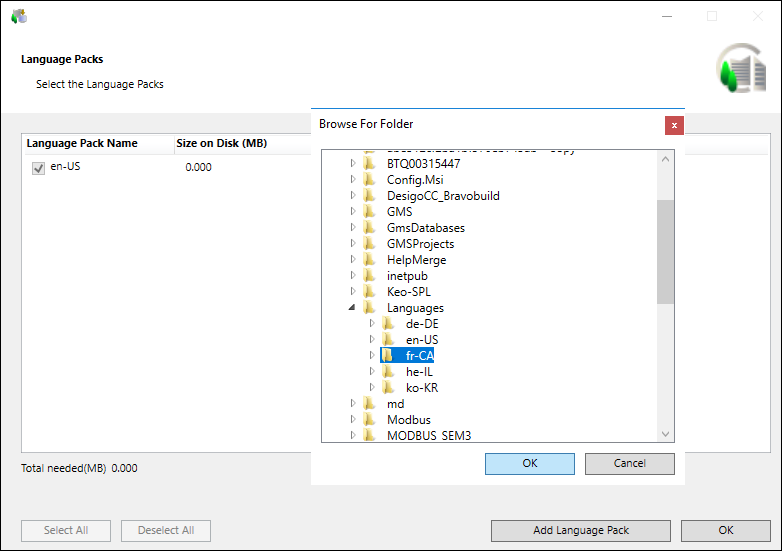 - Click Add Language Pack, navigate to the Languages folder containing the language pack you want to install, select it and click OK.