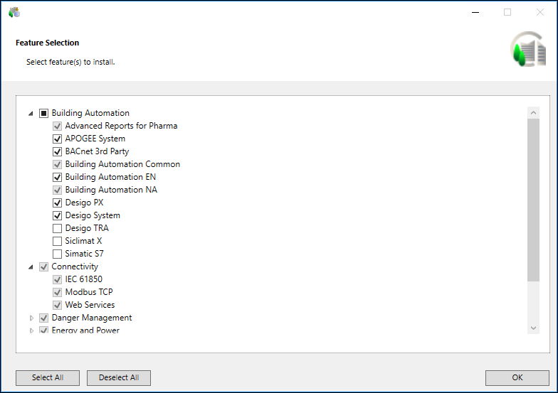 - Click OK to return to the Feature Selection dialog box.