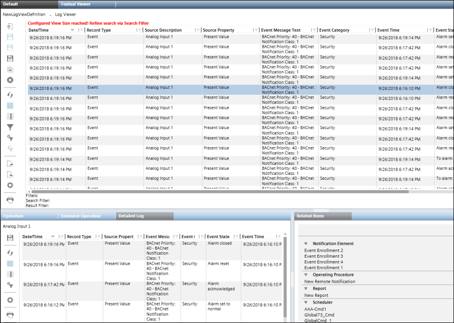 For example, you can apply a result filter on the log data to retrieve all records with Source Description as "Analog Input 1".