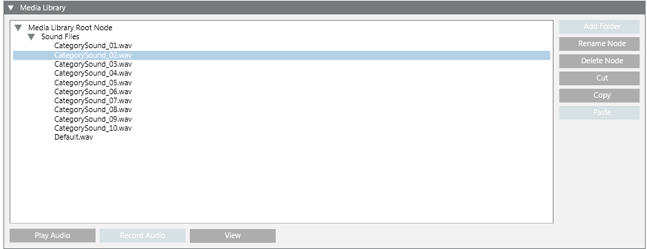 The Media Library expander displays the imported media files that you can organize as needed. Media files can be organized into subfolders under the Media Library Root Node, using the buttons provided.