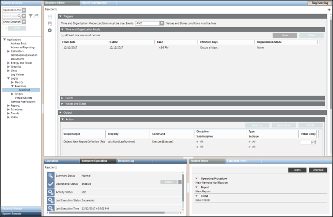 In System Browser, expand the Reports folder and drag the report definition to be executed to the window labeled Untitled in the Graphics editor.