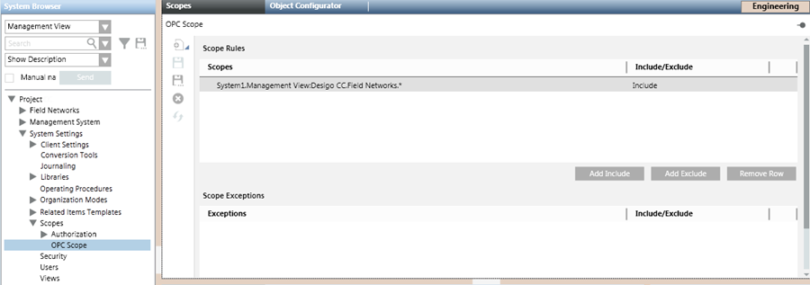 - In the Scope for OPC connectivity, you can only link points from Management View or Application View of System Browser.