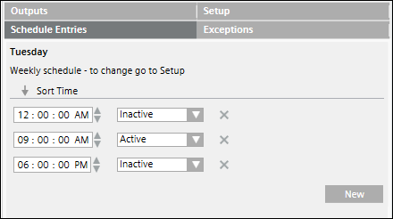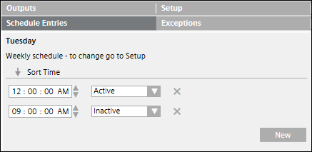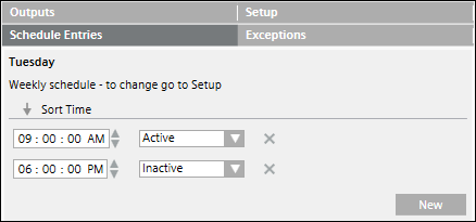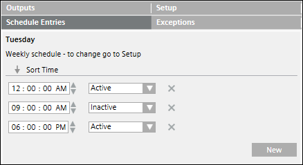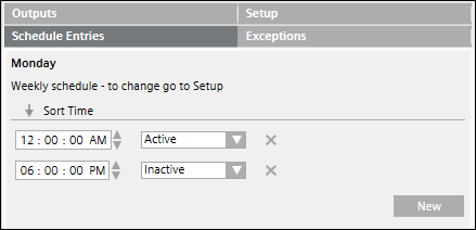 You can create a daily schedule from the Sub-Type drop-down list in the Setup tab and specify either similar active or inactive values for all days of the week or different values for individual days from the Schedule Entries tab.
