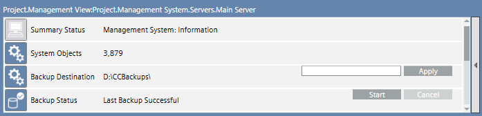 In Progress;Componentfor the component currently backed up;Progressdisplays the backup completion percentage. When the backup is completed, the status changes toLast Backup Successfuland indicates the backup date. The project is available on the server at the given destination path.