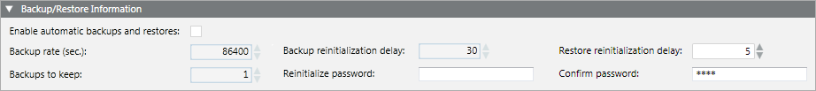 Backup rate (sec.) | Indicates the rate (in seconds) at which the device is backed up. The default value is 86400 seconds. |