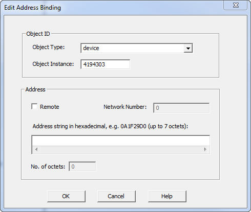 Object ID | Select this button and enter an Object ID and an Instance Number for the object you want to search for on the network. |