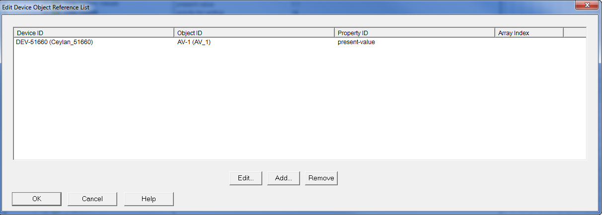 From the system tree, select your BACnet device, and then from the Services menu, select Add/Remove List Element.