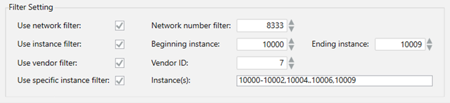 - To enable the discovery of all the devices within a range, select the Use instance Filter option. Then, enter your range of numbers in the Beginning instance and Ending instance fields.