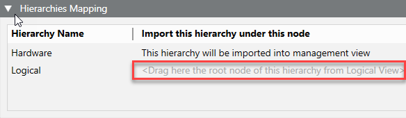 - Drag the Logical view root node to the Logical row, into the Import this hierarchy under this node column.
