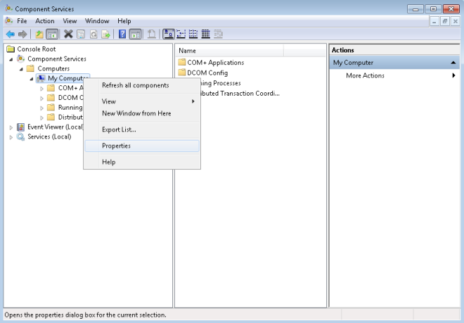 - In the Component Services window, under Console Root, expand Component Services, and then expand the Computers folder.