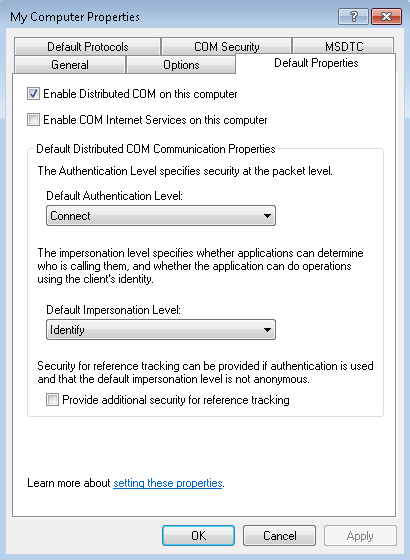 Once the system-wide DCOM settings are properly configured, it is necessary to configure the server-specific DCOM settings. To modify the configuration, do the following: