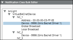 - The management station finds and displays devices with notification class recipients on the BACnet network.