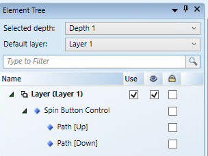 - In the Element Tree, the two UP and DOWN buttons display as children of the Spin button control.