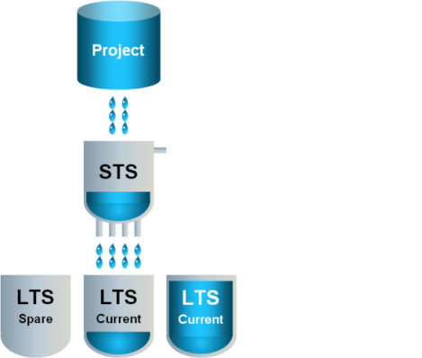 1 | Data flows to the STS and either stays there or flows to the current LTS slice. An empty spare LTS slice is ready if the current LTS slice fills up. |