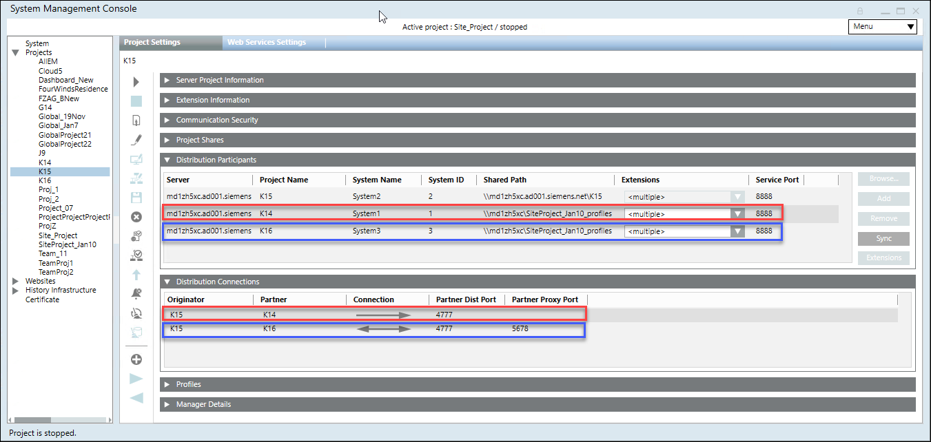Using the Distribution Participants expander you can configure the distribution participants (projects) available on the same Server or from other Server. You can do this in two ways:
