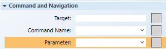 - Parameter – You will enter the information under this heading in the Parameter field of the Configuration and Navigation properties and in the Parameter Name field of Command Control properties section. See table below.