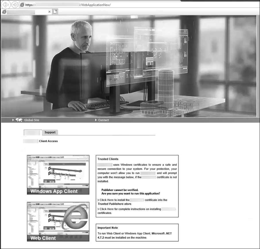 - From the Desigo CC web page, depending on the client type, click the Windows App Client thumbnail and follow the installation wizard prompts that display (in the section on Starting and Exiting the System, see Launch a Windows App Client).