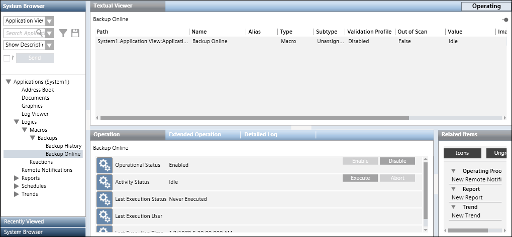 - Select Applications > Logics > Macros > Backups > Backup Online.