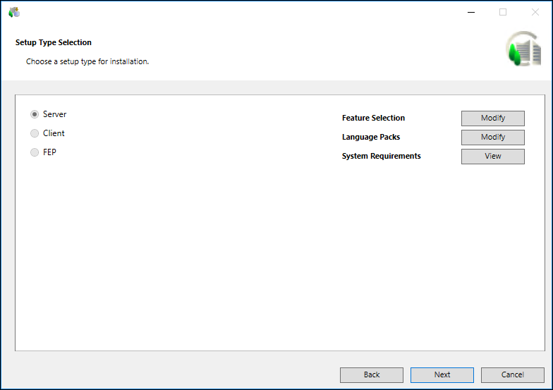 - In the Setup Type Selection dialog box, you cannot change the already installed setup type. Proceed to modify the feature selection, language packs. You can also review the system requirements.