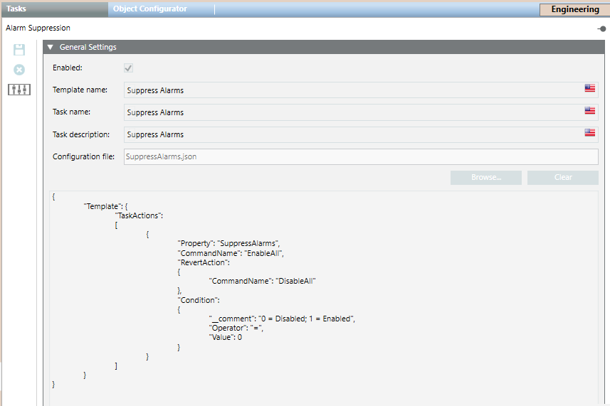 Tasks templates are located in the relevant template folder in Desigo CC libraries.