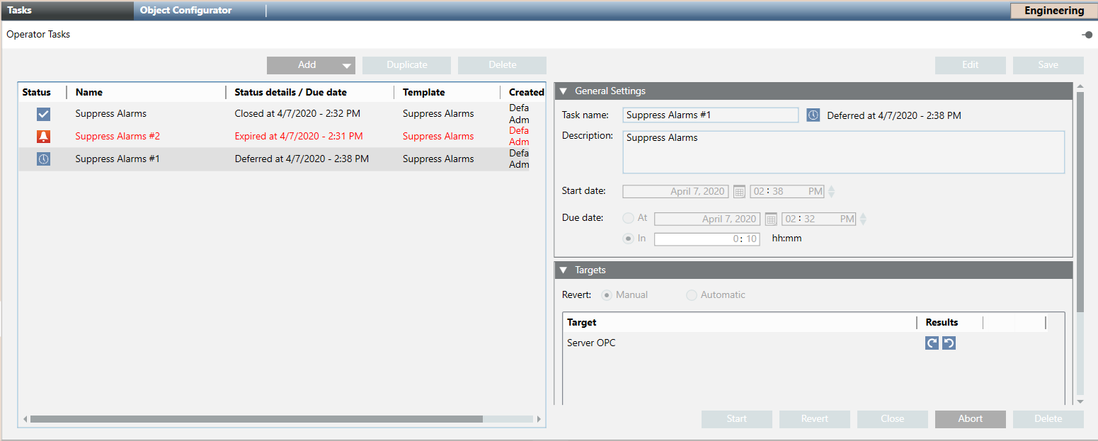 In Engineering mode, you can create new tasks templates that will be used by operators to create new tasks in Operating mode.