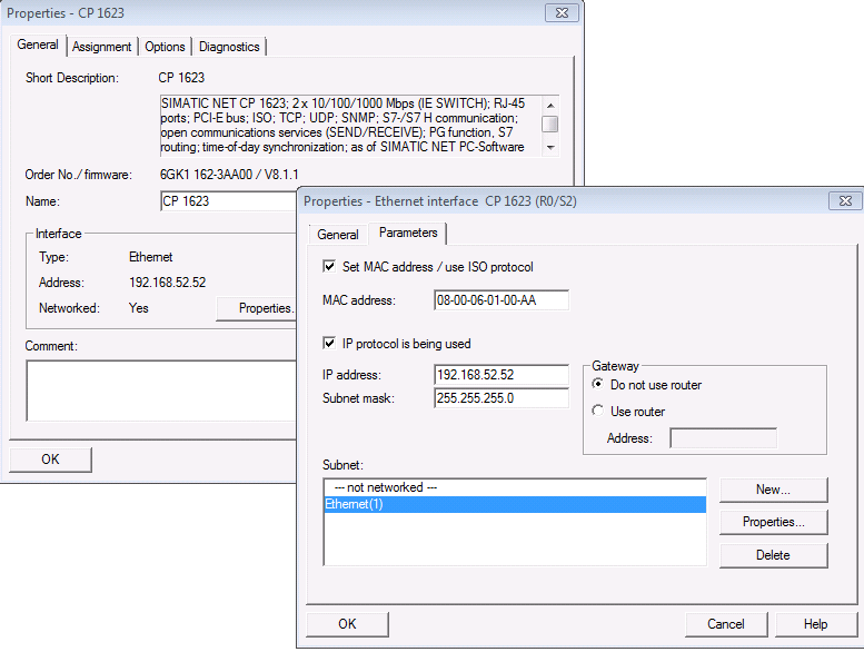 NOTE: The MAC address is important if you communicate with an old CP443 because the fault-tolerant connection only works with a MAC address. The MAC address must be unique.