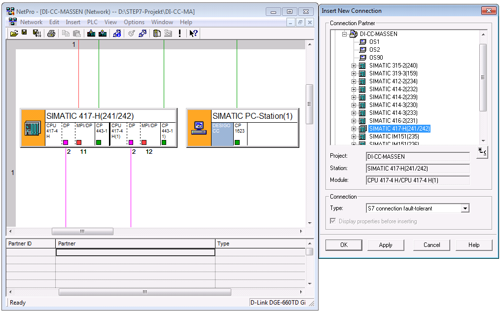b. In the Type drop-down list, select S7 connection fault-tolerant.
