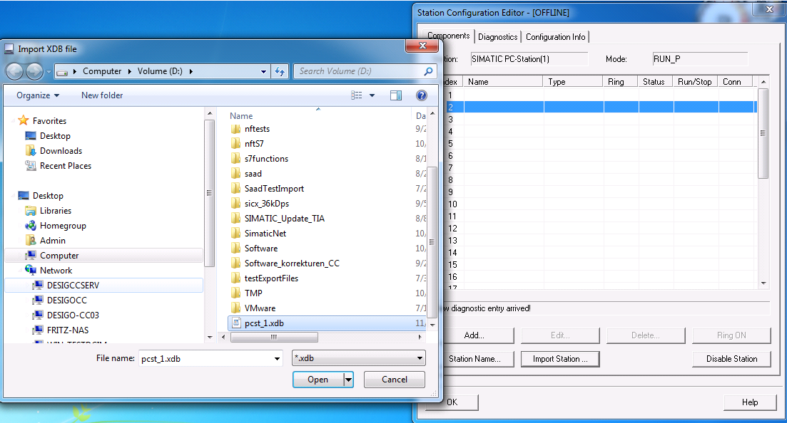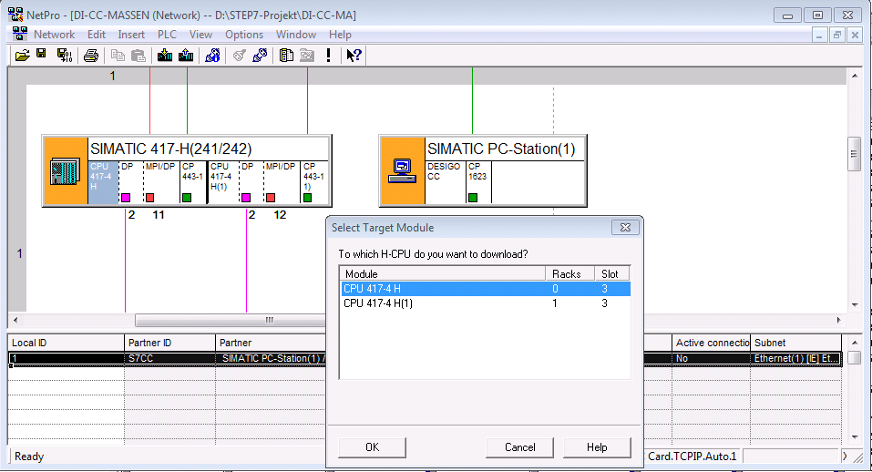 - Load HW-Config and the fault-tolerant connection in the Desigo CC computer. (Load HW-Config + connection and Import the configuration file (see Import Station above) is the same thing. Usually, for first configuration, use the import procedure described above, then the loading procedure).