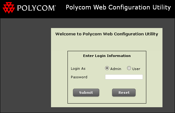 At the login page, log in as Admin using the admin password of the phone. NOTE: The factory default Admin password is 456.