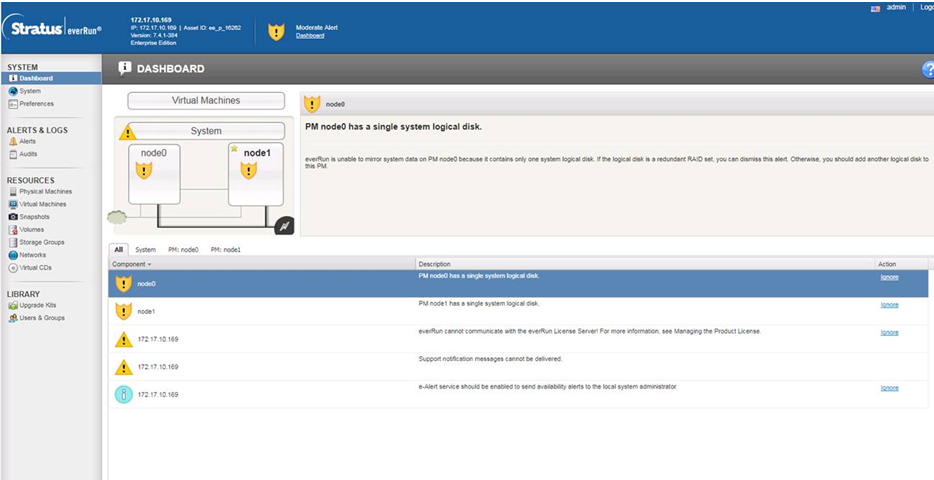 See the Managing Local User Accounts section of the everRun’s User’s Guide. The DASHBOARD of the everRun Availability Console displays node0.