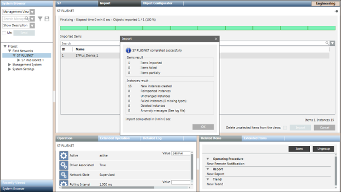 - The new S7 Plus driver object appears in the System Browser below the Drivers node.