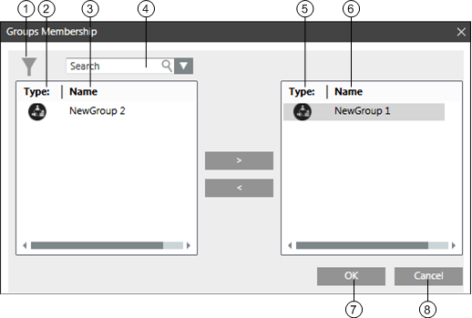 The Group Membership dialog box allows you to associate a recipient user with the configured recipient groups.