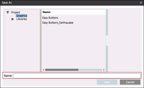 - In the Save As dialog box, enter a name for the configured graphic in the Name field and click Save