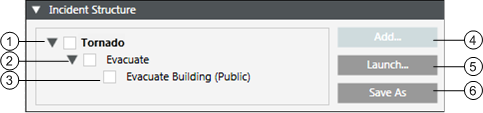 - Incident Structure: Displays the structure of the initiated incident, for example, the name of the incident, the launch groups and the notification templates associated with the incident.