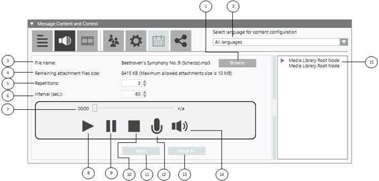 NOTE: The maximum allowed attachment size is 10MB. - Repetitions: (Available only for MNS license users) Displays the number of repetitions the multimedia file is played.