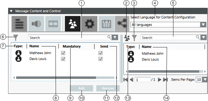12 | Send | The selected check box represents that the corresponding recipient will receive the message. |