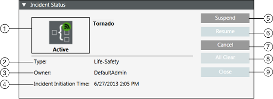 1 | Incident State | Displays the current incident state. |