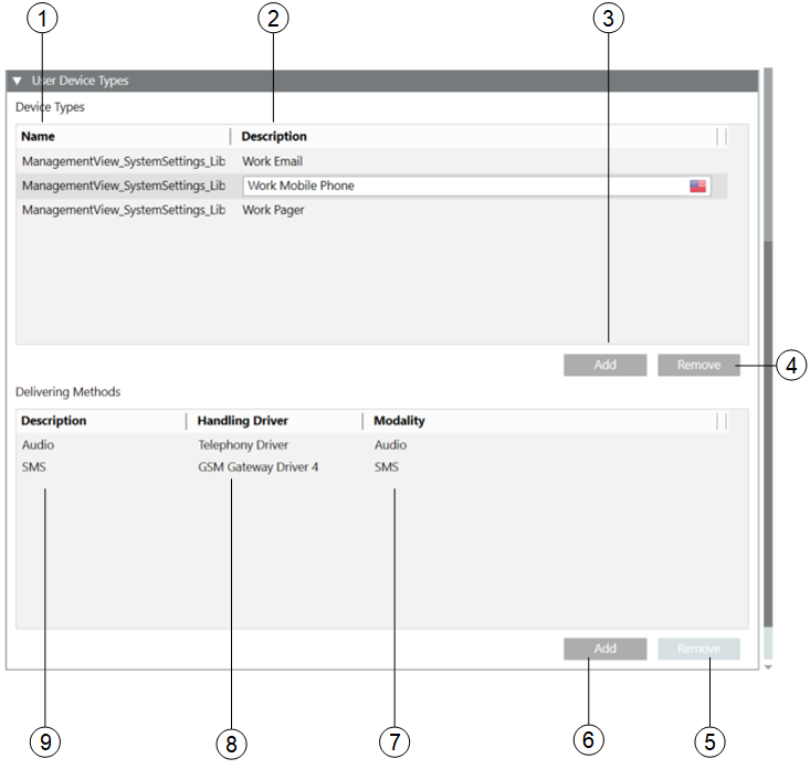 9 | Description | Displays the description of the delivery method for a selected user device type. |