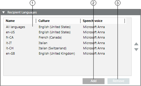 1 | Recipient Languages | Displays the list of recipient user’s languages with the name, culture, and the speech voice. |