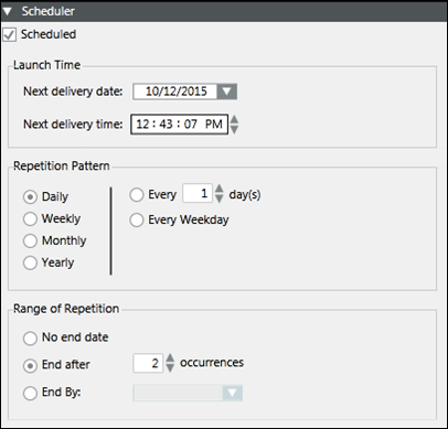 - Repetition Pattern: Select the required repetition pattern and select or enter the corresponding value.