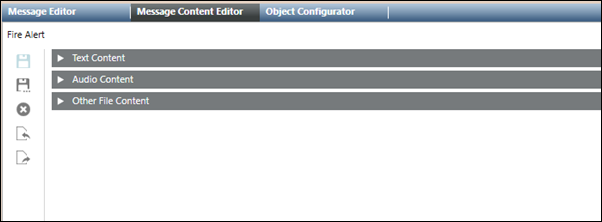 The Message Content Editor tab allows to add and configure the message content in the form of text, audio or other files (for example, video, pdf or text file).