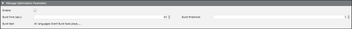 - Message Optimization Parameters (Available only for Reno Plus and MNS license users): Provides a way to group the events raised during quick succession and generate a consolidated message (summary incident) describing the event burst situation.