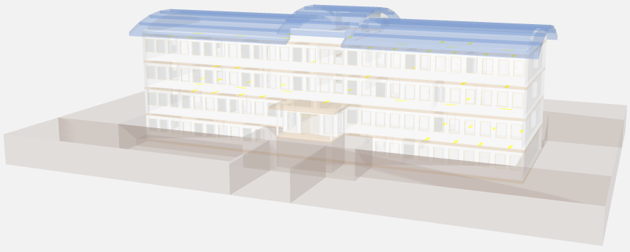 | Reduces the view of the building. Wall and windows are hidden. Engineering: Walls and windows |