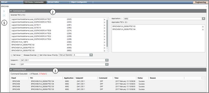 The APOGEE FLN Device Commander allows you to issue a single command to be applied to a selected group of points in the building system. You can command a set of BACnet FLN devices or TEC subpoints to specific values in one single operation. The devices can also reside in different networks and systems.