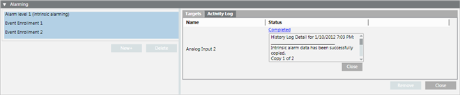 | Copy All | Copy all the event enrollment objects and/or the intrinsic alarm associated with the selected BACnet object to one or more BACnet objects. This creates new event enrollment objects for each target object, and overwrites the intrinsic alarm properties of the target objects with the intrinsic alarm properties of the selected object. |