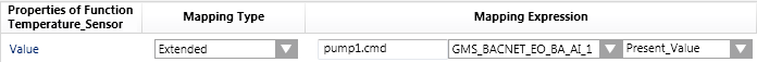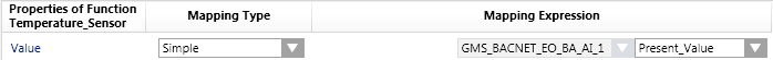 • Example: The Temperature_Sensor Function maps the Value property to the Object Model property Present_Value.