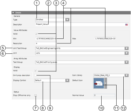 9 | Omit prop.descriptor | When selected, the Present Value label is displayed alongside the property's value. |