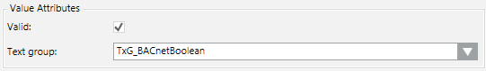 | Text Group | Sets the text group (such as, TxG_BACnet_Event_Transition_Bits_BACNET) that associates an array number to a corresponding text. For example: |